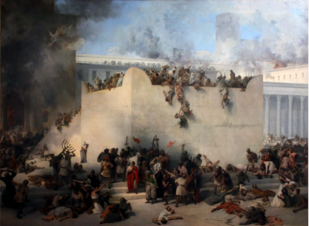 这些灾难性事件造成了犹太民族的离散(Diaspora)。犹太人被迫以少数民族的身份生活在异国他乡,承受迫害和苦难。因此圣殿被毁不仅是建筑本身的覆灭,也是犹太民族被迫流亡以及为获得自治和安全所不懈斗争的标志。